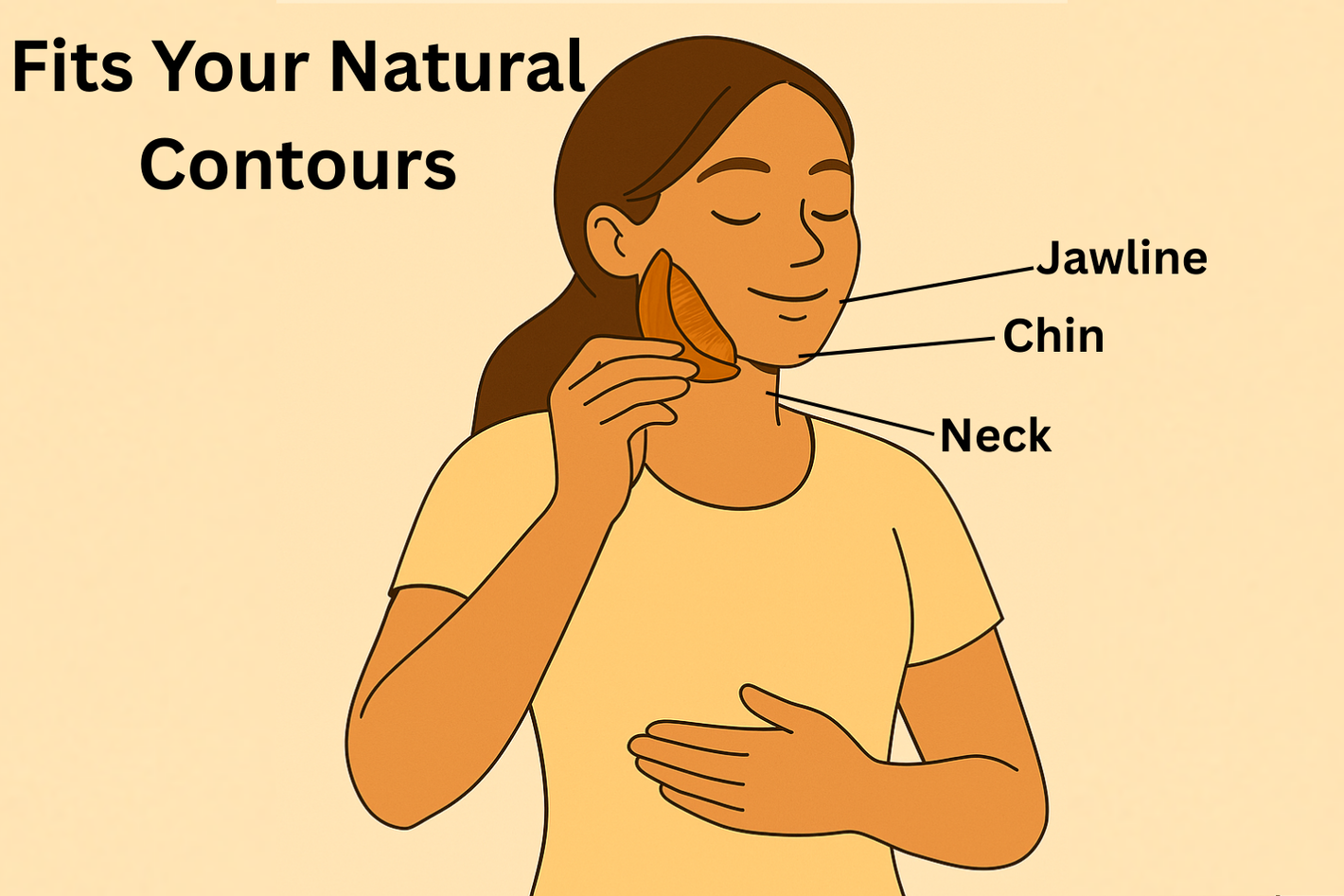 Gently glide the brush along your jawline, chin, and neck in upward and outward strokes. The curved design follows your face shape to gently reduce puffiness and support healthy circulation.